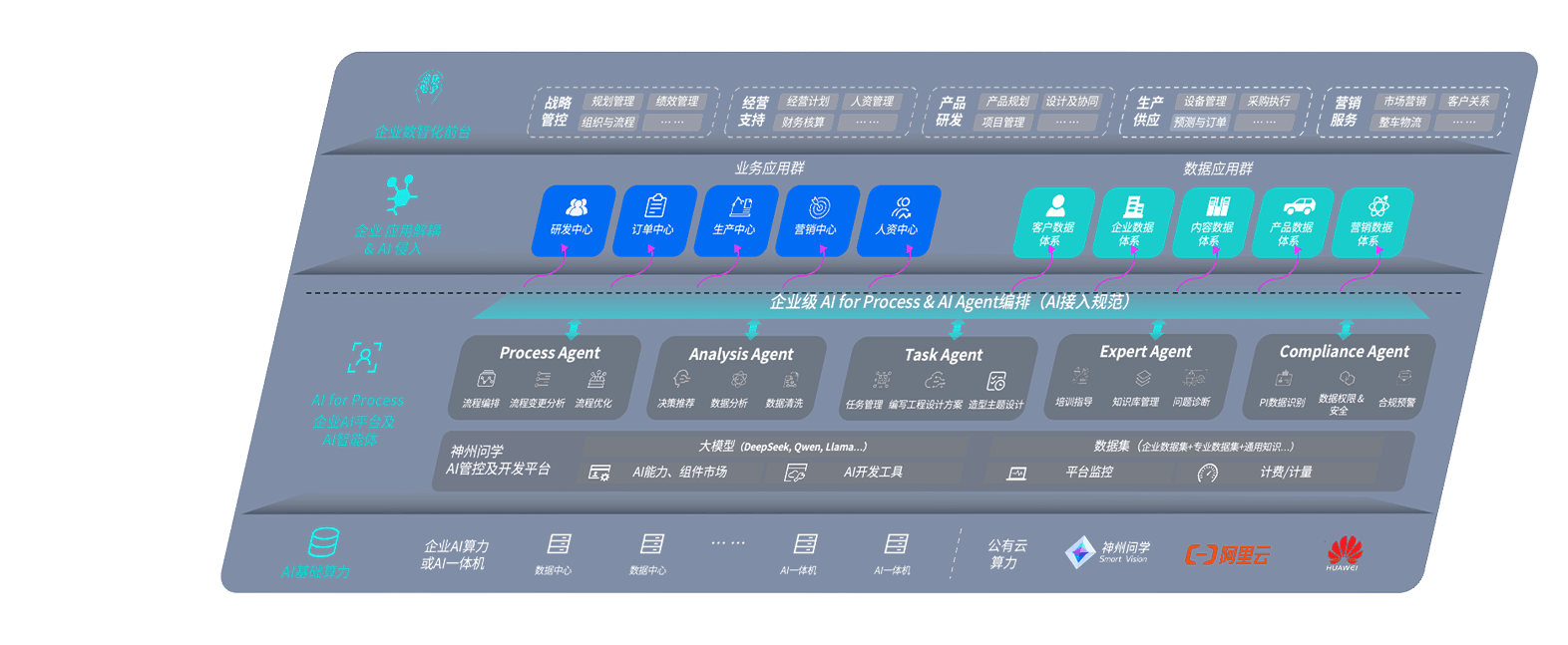 ABG欧博问学智车解决方案是一套基于AI技术的汽车行业智能化系统,,,,覆盖从底层算力到顶层AI应用的全栈方案。。。。方案由算力层、、、、模型层和应用层组成:算力层,,,方案支持多种一体机配置,,,具备云端灵活部署、、、、多云适配以及动态优化计算资源的能力;模型层,,ABG欧博问学平台版提供了企业级AI应用一站式构建与管理平台,,,支持基于后训练强化技术的汽车企业专属模型的训练、、、、评测和运营;应用层,,,ABG欧博问学DeepSeek版提供包括超级员工、、、、智能招采、、智能营销、、智能客服、、、、AI for BI等一系列解决方案,,,,可助力汽车行业实现数字化转型,,让管理更智能、、、、响应更敏捷。。。。