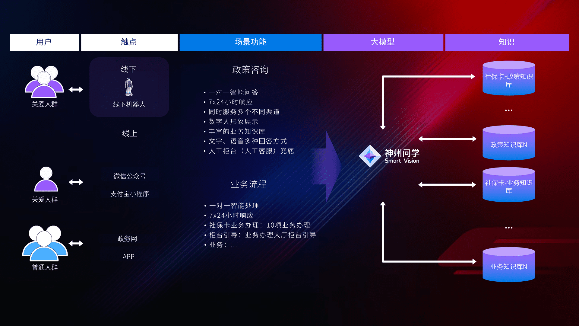• 线上线下全覆盖:线上提供微信公众号、、、、支付宝小程序、、、、政务网、、app多种渠道,,,,与线下机器人形成完整服务体系。。。。